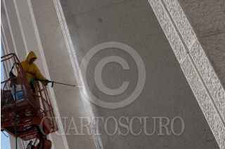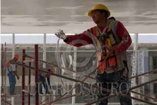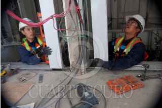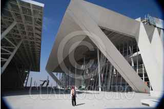QUERÉTARO, QUERÉTARO, 28DICIEMBRE2010.- Trabajadores continuan con la construcción del Centro de Congresos y Convenciones antes llamado Ciudad de las Artes, que lleva más de un año de atraso en su entrega y que además tiene dos litigios por parte de constructoras y una demanda por parte del arquitecto Teodoro González de León por plagio. Esta infraestructura sería la magna obra del sexenio anterior sin embargo no se ha terminado. FOTO: DEMIAN CHÁVEZ/CUARTOSCURO.COM