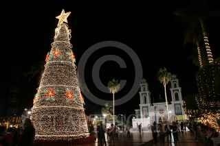 COMALCALCO, TABASCO, 30DICIEMBRE2010.- Aspectos de la iluminación que hay en la plaza principal municipal con motivo de las fiestas de fin de año. El espacio donde se utilizaron alrededor de un millón de luces con destellos multicolores es visitado por la población en general. FOTO: MARCO POLO GUZMÁN HERNÁNDEZ/CUARTOSCURO.COM