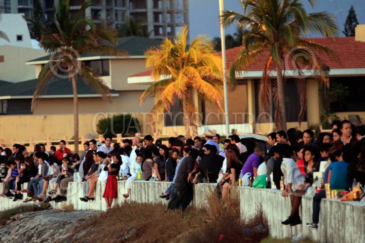BOCA DEL RÍO, VERACRUZ., 01ENERO2011.- Cientos de veracruzanos y turistas se dieron cita desde las primeras horas de este día para convivir y presenciar el amanecer del nuevo año y cargarse de energía positiva desde el Boulevard Manuel Ávila Camacho, como ya es costumbre algunos aprovecharon el momento para ingerir bebidas alcohólicas y así recibir el 2011. FOTO: FÉLIX MÁRQUEZ/CUARTOSCURO.COM