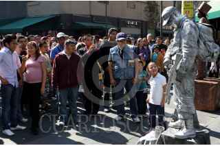 MÉXICO, D.F., 02ENERO2011.- Cientos de capitalinos disfrutan del primer domingo del año interactuan con las estatuas humanas en el primer cuadro de la ciudad. De acuerdo al gobierno federal se han creado miles de nuevos empleos en México en el ultimo año, aunque diariamente miles de personas tienen que emplearse en la economía informal o buscar otras formas de ingreso adicionales ya que los empleos formales son temporales o no son muy bien pagados. FOTO: RODOLFO ANGULO/CUARTOSCURO.COM
