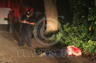 CUNDUACÁN, TABASCO, 04ENERO2010.- El cuerpo sin vida y decapitado de un sujeto desconocido fue encontrado abandonado por autoridades uniformadas de la policía municipal sobre la carretera federal Cárdenas - Villahermosa, a la altura de la ranchería Aguilar. Ante este hecho sangriento informa la Procuraduría General de Justicia que del inicio de año ya van cuatro ejecutados sin tener indicios de los autores materiales dándose incapaces de resolver los acontecimientos. FOTO: MARCO POLO GUZMÁN HERNÁNDEZ/CUARTOSCURO.COM
