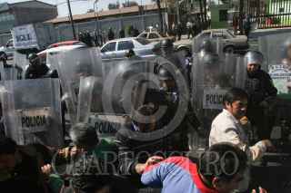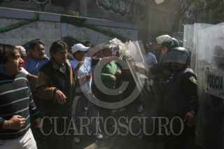 MÉXICO, D.F., 05ENERO2011.- Granaderos de la Secretaria de Seguridad Pública del Distrito Federal, quitaron a trabajadores de la delegación Iztapalapa que bloquearon el eje 6 Oriente y Churubusco debido a que no han recibido bonos y pagos del 2010 . FOTO: SAÚL LÓPEZ/CUARTOSCURO.COM