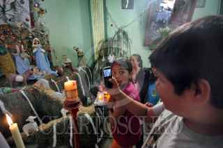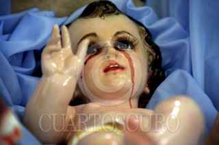 XICO, VERACRUZ., 05ENERO2011.- En la pequeña capilla de "El Llanito" de este municipio feligreses y curiosos aseguran que ocurrió un milagro después de que un par de niños de la zona descubrieron que la figura del Niño Dios tenia lágrimas de sangre real, lo que de inmediato atrajo la visita de los pobladores para venerarlo, sin embargo, el párroco optó por limpiar la imagen y negó que el hecho fuera real, afirmando que solo se trato de una prueba de fe. FOTO: FÉLIX MÁRQUEZ/CUARTOSCURO.COM