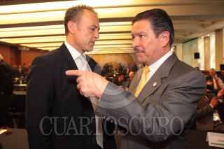 MÉXICO, D.F., 06ENERO2011.- Carlos Navarrete, coordinador de los senadores del PRD y el embajador de México en Estados Unidos, Arturo Sarukhán, participaron en la XXII Reunión de Embajadores y Cónsules, que se realizó en las instalaciones de la Secretaría de Relaciones Exteriores. FOTO: CUARTOSCURO.COM