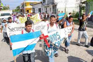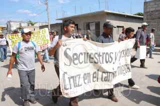 CHAHUITES, OAXACA, 08ENERO2011.- Cientos de inmigrantes de distintas nacionales realizaron una marcha con pancartas por las principales calles de la cabecera municipal, donde piden paz y respeto para los compatriotas de otras nacionalidades que tienen la necesidad de pasar por territorio Mexicano. Dicha marcha denominada Caravana Paso a Paso por la Paz culminó sobre las vías férreas en un acto de protesta pacifica. FOTO: MARCO POLO GUZMÁN HERNÁNDEZ/CUARTOSCURO.COM
