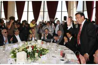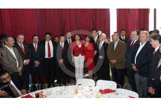 MÉXICO, D.F, 08ENERO2011.- Humberto Moreira, gobernador con licencia de Coahuila y la diputada federal Cristina Díaz, acompañados de Carlos Flores, EgidioTorre Cantú, gobernador de Tamaulipas; Emilio Gamboa, dirigente de la CNOP; Jorge Herrera Caldera, gobernador del estado de Durango; Enrique Peña Nieto, gobernador del Estado de México; Ivonne Ortega, gobernadora del estado de Yucatán; Joel Ayala, dirigente de la FSTSE; el senador Manlio Fabio Beltrones, el diputado Jorge Carlos Ramírez Marin, Carlos Romero Deschamps, dirigente del Sindicato Petrolero; Rodrigo Medina, gobernador del estado de Nuevo León durante un desayuno de la cupula priísta. FOTO: CUARTOSCURO.COM
