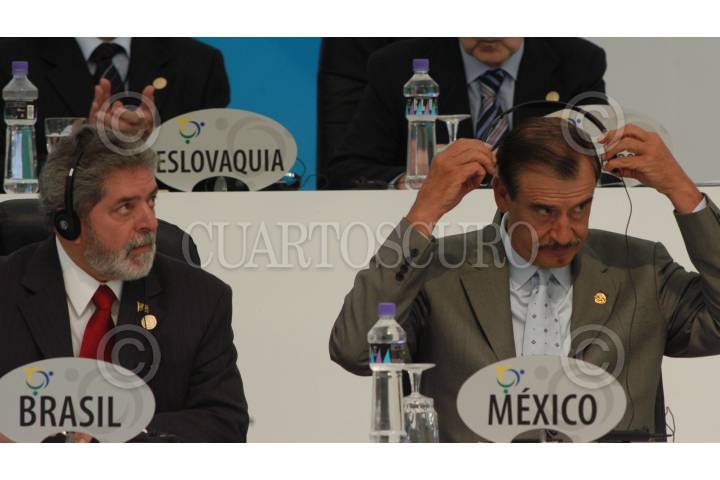 GUADALAJARA, JALISCO 28MAYO2004.- El presidente Vicente Fox, pasa a un lado del canciller cubano Felipe Pérez Roque, al concluir la ceremonia de inauguración de la Tercera Cumbre América Latina y el Caribe-Unión Europea. FOTO: Germán Romero/CUARTOSCURO.COM