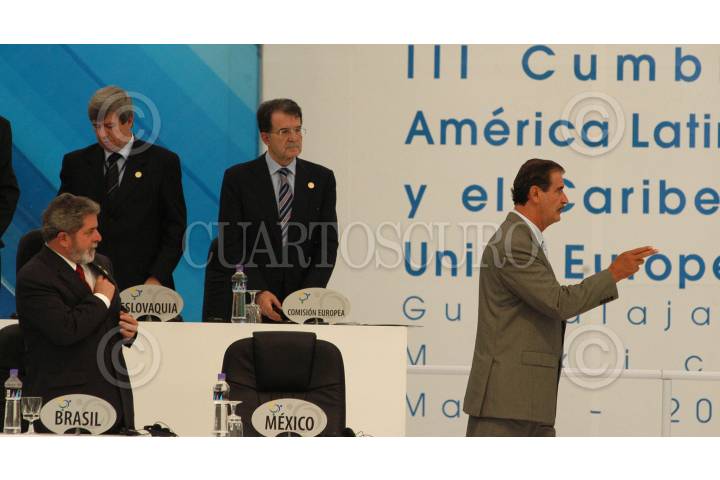 GUADALAJARA, JALISCO 28MAYO2004.- Funcionarios del gobierno federal asistieron ceremonia de inauguración de la Tercera Cumbre América Latina y el Caribe-Unión Europea. Eduardo Romero de la Función Publica, Rafael Macedo de la PGR, Alfonso Durazo secretario del presidente. FOTO: Germán Romero/CUARTOSCURO.COM