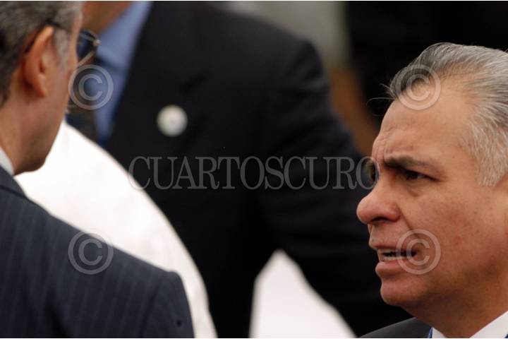 GUADALAJARA, JALISCO 28MAYO2004.- Funcionarios del gobierno federal asistieron ceremonia de inauguración de la Tercera Cumbre América Latina y el Caribe-Unión Europea. Eduardo Romero de la Función Publica, Rafael Macedo de la PGR, Alfonso Durazo secretario del presidente. FOTO: Germán Romero/CUARTOSCURO.COM