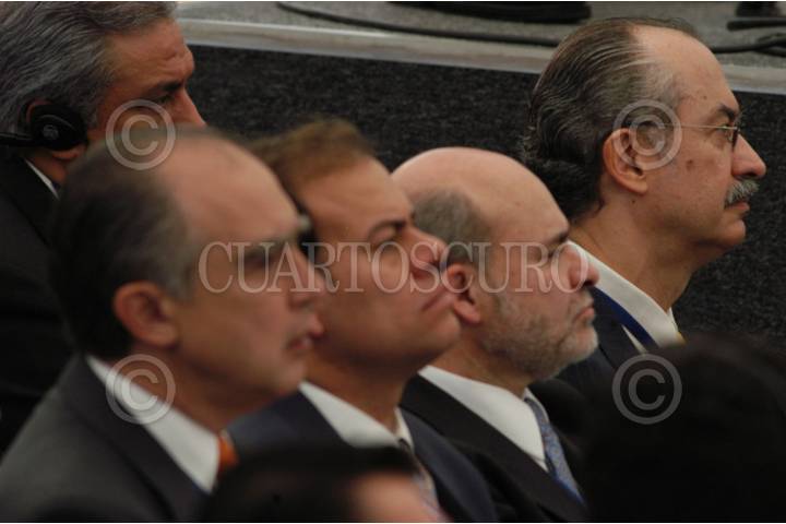 GUADALAJARA, JALISCO 28MAYO2004.- Funcionarios del gobierno federal asistieron ceremonia de inauguración de la Tercera Cumbre América Latina y el Caribe-Unión Europea. Eduardo Romero de la Función Publica, Rafael Macedo de la PGR, Alfonso Durazo secretario del presidente. FOTO: Germán Romero/CUARTOSCURO.COM