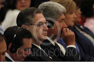 GUADALAJARA, JALISCO 28MAYO2004.- Funcionarios del gobierno federal asistieron ceremonia de inauguración de la Tercera Cumbre América Latina y el Caribe-Unión Europea. Eduardo Romero de la Función Publica, Rafael Macedo de la PGR, Alfonso Durazo secretario del presidente. FOTO: Germán Romero/CUARTOSCURO.COM
