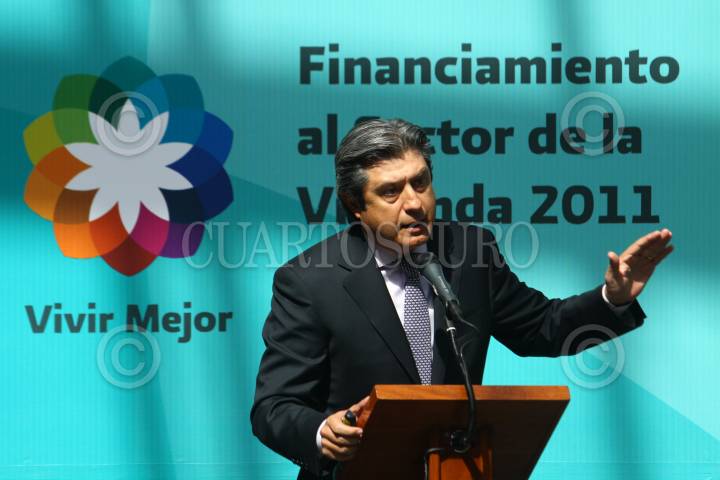 MÉXICO, D.F., 11ENERO2011.- Ignacio Deschamps, presidente de la Asociación de Bancos de México y Víctor Manuel Borras, director del INFONAVIT, durante la presentación de los "Programas y acciones de financiamiento al sector de la vivienda 2011" en el museo del Arzobispado. FOTO: MOISÉS PABLO/CUARTOSCURO.COM
