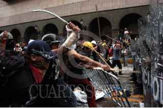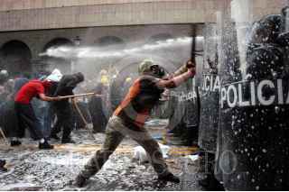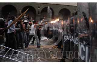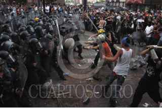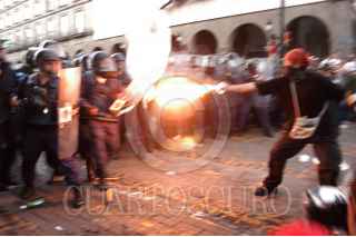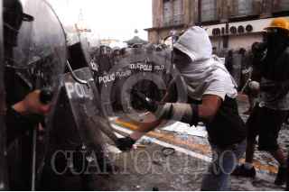 GUADALAJARA, JALISCO 28MAYO2004.- Un grupo de jovenes se enfrentaron a la policia, los aminifestantes rechazan la realización de la Tercera Cumbre América Latinay el Caribe-Unión Europea. FOTO: Germán Romero/CUARTOSCURO.COM