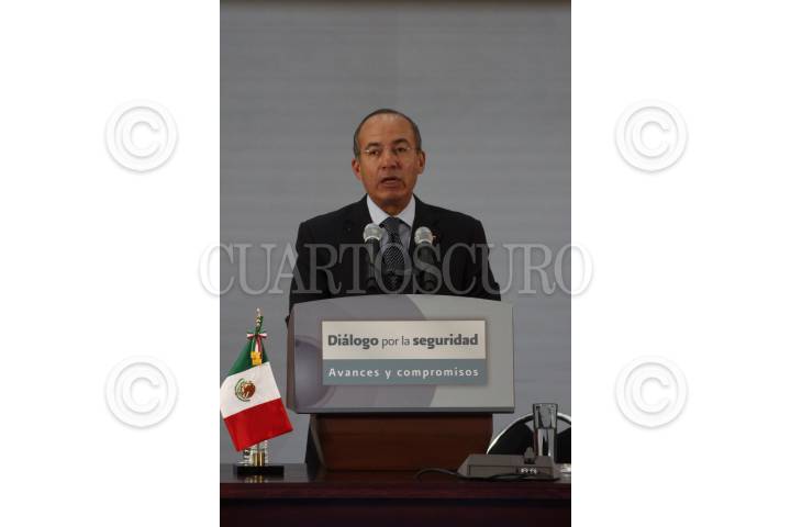 MÉXICO, D.F., 12ENERO2011.- El presidente Felipe Calderón acompañado de su esposa Margarita Zaval; Genaro Garcia Luna, secretario de Seguridad Pública y Alejandro Martí, presidente de México SOS durante el evento Diálogos por México, Avances y Compromisos que se realizo en el Campo Marte. FOTO: RODOLFO ANGULO/CUARTOSCURO.COM