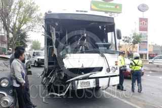 MÉXICO, D.F., 13ENERO2011.- Una persona resultó con lesiones al impactarse un autobus de pasajeros con placas de circulación 814NA020, contra la aguja de incorporacion del desnivel en avenida Constituyentes a la altura de avenida Observatorio en la colonia 16 de Septiembre en la Delegación Miguel Hidalgo. FOTO: LUIS CARBAYO/CUARTOSCURO.COM