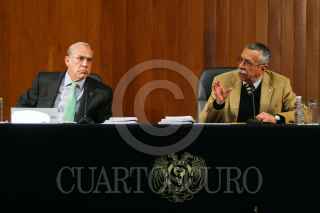 MÉXICO, D.F., 13ENERO2011.- José Ángel Gurría, director de la OCDE, y el politólogo Rolando Cordera participaron en la Facultad de Medicina en el foro: "Las Ciencias en la UNAM, construir el futuro de México". FOTO: ISAAC ESQUIVEL/CUARTOSCURO.COM