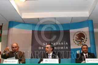 MÉXICO, D.F., 14ENERO2011.- Bruno Ferrari, Secretario de Economía y Sergio Cervantes, presidente de la Cámara Nacional de la Industria de la Transformación, ofrecieron una conferencia de prensa conjunta donde se informó que las expectativas de inflación para 2011 elaboradas por el sector privado están en promedio 3.8 por ciento, menor que el 4.4 por ciento del cierre de 2010. Dicha conferencia se realizó en la sede esta dependencia. FOTO: MISAEL VALTIERRA/CUARTOSCURO.COM