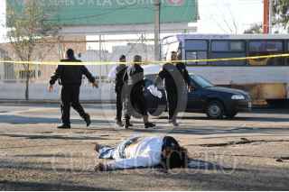NEZAHUALCOYOTL, ESTADO DE MÉXICO, 16ENERO2011.- Al menos nueve personas resultaron muertas cuando un grupo armado ingreso a una vivienda en la colonia Esperanza al rededor de las 06:00 de la mañana; algunos sujetos que intentaron escapar quedaron tirados en la calle. Al lugar llegaron elementos de la Agencia de Seguridad Estatal para resguardar la zona. FOTO: LUIS CARBAYO/CUARTOSCURO.COM
