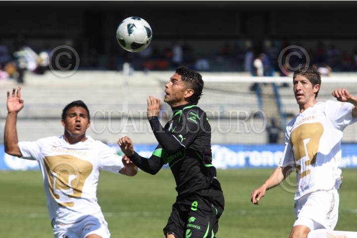 MÉXICO D.F. 16ENERO2011.- Dante Lopez de los Pumas de la UNAM celebra su anotación en contra del Santos Laguna durante el encuentro que se realizo en el Estadio Olímpico Universitario; partido de la jornada 3 del torneo Clausura 2011 del fútbol mexicano donde los Pumas ganaron 2 goles por 0. FOTO: RODOLFO ANGULO/CUARTOSCURO.COM