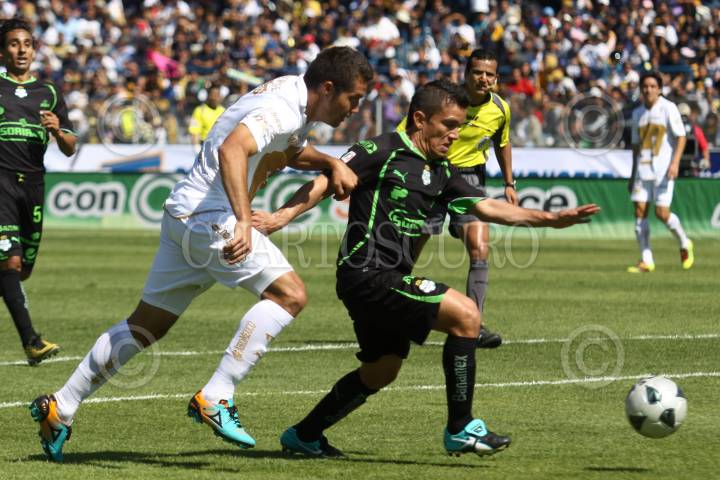 MÉXICO D.F. 16ENERO2011.- Dante Lopez de los Pumas de la UNAM celebra su anotación en contra del Santos Laguna durante el encuentro que se realizo en el Estadio Olímpico Universitario; partido de la jornada 3 del torneo Clausura 2011 del fútbol mexicano donde los Pumas ganaron 2 goles por 0. FOTO: RODOLFO ANGULO/CUARTOSCURO.COM