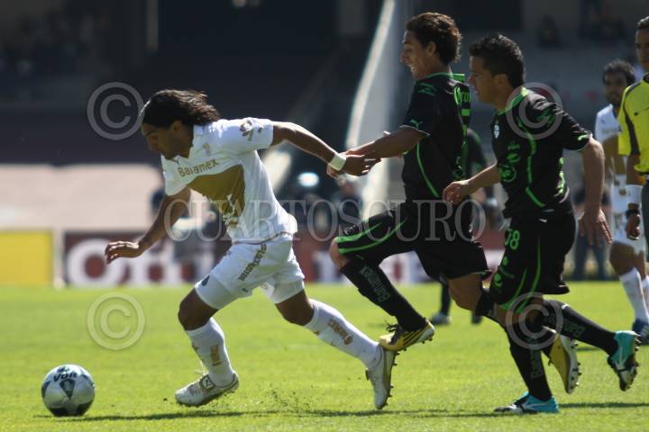 MÉXICO D.F. 16ENERO2011.- Dante Lopez de los Pumas de la UNAM celebra su anotación en contra del Santos Laguna durante el encuentro que se realizo en el Estadio Olímpico Universitario; partido de la jornada 3 del torneo Clausura 2011 del fútbol mexicano donde los Pumas ganaron 2 goles por 0. FOTO: RODOLFO ANGULO/CUARTOSCURO.COM