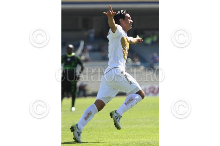 MÉXICO D.F. 16ENERO2011.- Dante Lopez de los Pumas de la UNAM celebra su anotación en contra del Santos Laguna durante el encuentro que se realizo en el Estadio Olímpico Universitario; partido de la jornada 3 del torneo Clausura 2011 del fútbol mexicano donde los Pumas ganaron 2 goles por 0. FOTO: RODOLFO ANGULO/CUARTOSCURO.COM