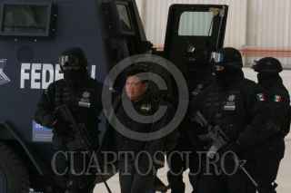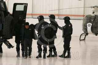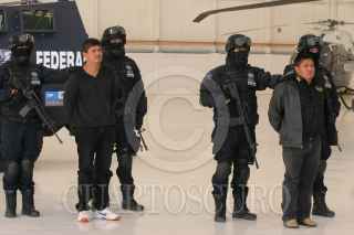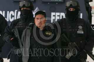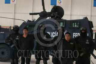 MÉXICO, D.F., 18ENERO2011.- Elementos de la Policía Federal, presentaron ante los medios de comunicación a Flavio Mendez Santiago, alias "El Amarillo", uno de los fundadores de la organización delictiva conocida como "Los Zetas" y buscado por en la lista de los 37 lideres criminales más peligrosos de México, junto con el "Amarillo" fue detenido Carlos Alejandro Rodríguez Zepeda, quien actuaba como escolta personal de Méndez Santiago. FOTO: SAÚL LÓPEZ/CUARTOSCURO.COM