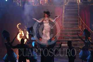 VILLAHERMOSA, TABASCO, 18ENERO2011.- María Víctoria, en su participación y cantando con el micrófono hacia abajo en la obra teatral "Perfume de Gardenias" la cual se presento en el teatro Esperanza Iris. FOTO: MARCO POLO GUZMÁN HERNÁNDEZ/CUARTOSCURO.COM