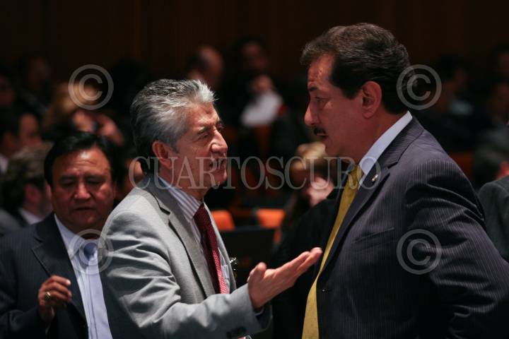 MÉXICO, D.F., 19ENERO2011.- Alejandro Díaz de León, titular de la oficina de Crédito Bancario, Carlos Montaño, subsecretario de Egresos, Gerardo Perdomo, administrador general de Aduanas y Gerardo Rodríguez Regordosa, subsecretario de Hacienda, tomaron protesta como funcionarios de la Secretaría de Hacienda ante el pleno de la Comisión Permanente de la Cámara de Diputados. FOTO: MOISÉS PABLO/CUARTOSCURO.COM