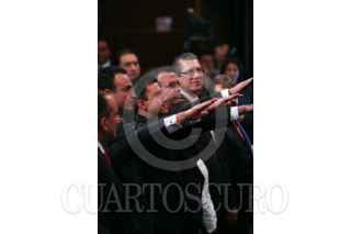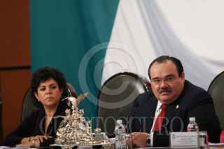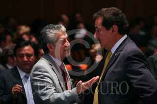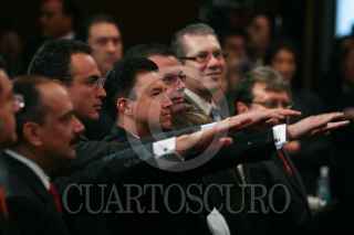 MÉXICO, D.F., 19ENERO2011.- Alejandro Díaz de León, titular de la oficina de Crédito Bancario, Carlos Montaño, subsecretario de Egresos, Gerardo Perdomo, administrador general de Aduanas y Gerardo Rodríguez Regordosa, subsecretario de Hacienda, tomaron protesta como funcionarios de la Secretaría de Hacienda ante el pleno de la Comisión Permanente de la Cámara de Diputados. FOTO: MOISÉS PABLO/CUARTOSCURO.COM