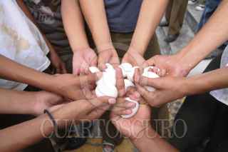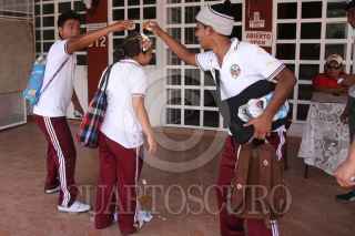 TENOSIQUE, TABASCO, 19ENERO2011.- Escolares del nivel secundaria se arrojan de huevos unos a otros en este inició del carnaval mas raro del mundo. Esta tradición popular hasta el momento ha dejado a un joven estudiante herido de gravedad por machetazo; según reporte de la Policía municipal el educando fue atacado por una banda de delincuentes conocida por "Los Caguamos", quienes esperaron al estudiante a las afueras de la secundaria federal José María Morelos y Pavón para herirlo de gravedad. FOTO: MARCO POLO GUZMÁN HERNÁNDEZ/CUARTOSCURO.COM