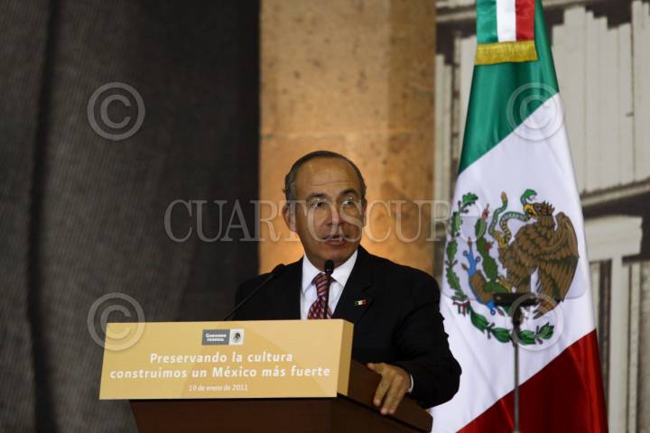 MÉXICO, D.F., 19ENERO2011.- El presidente Felipe Calderón acompañado de Consuelo Saizar, titular de Conaculta durante la inauguración del Fondo Bibliográfico "José Luis Martínez" en la Biblioteca de México en la Plaza de la Ciudadela. FOTO: RODOLFO ANGULO/CUARTOSCURO.COM