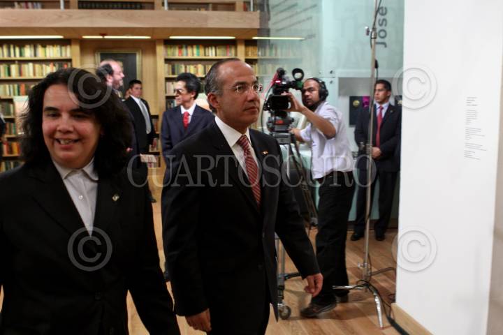 MÉXICO, D.F., 19ENERO2011.- El presidente Felipe Calderón acompañado de Consuelo Saizar, titular de Conaculta durante la inauguración del Fondo Bibliográfico "José Luis Martínez" en la Biblioteca de México en la Plaza de la Ciudadela. FOTO: RODOLFO ANGULO/CUARTOSCURO.COM