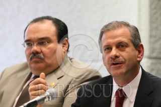 MÉXICO D.F., 20ENERO2011.- Sergio Hidalgo Monroy Potillo, Director General del Servicio de Administración y Enajenación de Bienes, acompañado de Carlos Ramírez Marin, Diputado del PRI, compareció ante las comisiones unidas de Hacienda y Crédito Publico Agricultura y Fomento Comunicaciones y Obra Publicas, esto en las instalaciones de la Cámara de Diputados. FOTO: GUILLERMO PEREA/CUARTOSCURO.COM
