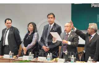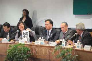 MÉXICO, D.F., 20ENERO2011.- Miguel Alcantára, secretario ejecutivo del Sistema Nacional de Seguridad Pública conversa con el senador Rene Arce durante su comparencia ante comisiones del Senado de la República. FOTO: CUARTOSCURO.COM