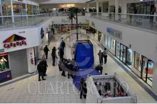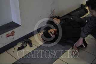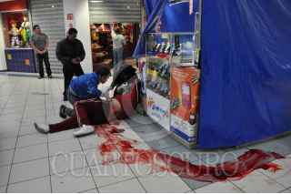 CIUDAD JUAREZ, CHIHUAHUA, 20ENERO2011.- Un enfrentamiento entre asaltantes y policías municipales dejó como saldo un policía municipal asesinado y tres civiles heridos de bala entre ellos dos de los asaltantes; el hecho se registró en el centro comercial Galerías Tec tras asaltar un módulo de pago del predial. Los heridos fueron trasladados a las instalaciones de un nosocomio por Paramédicos de la Cruz Roja Mexicana. Durante el asalto y la posterior balacera, clientes del centro comercial salieron por temor a que una bala perdida les diera alcance y resultar heridos mortalmente. FOTO: NACHO RUIZ/CUARTOSCURO.COM