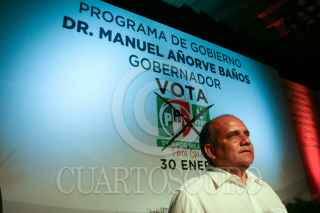 ACAPULCO, GUERRERO, 24ENERO2011.- Manuel Añorve, Candidato de la coalición “Tiempos Mejores” a la gobernatura del Estado de Guerrero, dio a conocer su Programa de Trabajo en caso de ganar la contienda electoral que se realizara en esta entidad el próximo 30 de Enero. FOTO: GUILLERMO PEREA/CUARTOSCURO.COM