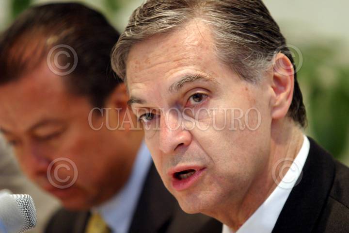 México, D.F. 09 JUNIO 2004.- Luis Ernesto Derbez, secretario de Relaciones exteriores, los senadores Fernando Margain y Raymundo Cárdenas durante la reunión de trabajo sostenida con las comisiones de Relaciones exteriores. FOTO: Sandra Perdomo/CUARTOSCURO.COM
