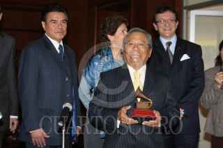 MÉXICO, D.F., 25ENERO2011.- Armando Manzanero, compositor mexicano, recibió el premio a la Excelencia por parte del comité organizador del los grammys. Esto se realizó al sur de la Ciudad de México. FOTO: MISAEL VALTIERRA/CUARTOSCURO.COM