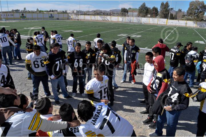 CIUDAD JUÁREZ, CHIHUAHUA, 25ENERO2011.- Margarita Zavala, presidenta nacional del DIF de Calderón, sostuvo en el CBTIS 128 un encuentro con los jóvenes estudiantes que practican el fútbol americano con el equipo de Los Jaguares, donde la acompañó Arturo Olivé Howley, director general de la NFL-México, para dar el espaldarazo de esta organización internacional del fútbol americano en la práctica de este deporte en Ciudad Juárez. FOTO: NACHO RUIZ/CUARTOSCURO.COM