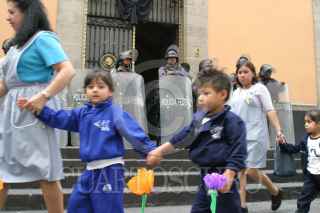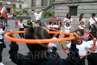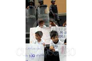 México, D.F. 09 JUNIO 2004.- Maestras y alumnos de los Centros de Desarrollo Infantil de la UAM realizaron sus actividades cotidianas a las afueras del senado y protestaron por el posible cierre de sus centros de estudio. FOTO: Sandra Perdomo/CUARTOSCURO.COM