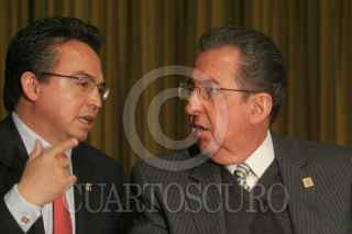 MÉXICO, D.F., 26ENERO2011.- Rocendo González Patiño, procurador agrario y Abelardo Escobar Prieto, secretario de la Reforma Agraria, durante la presentación "Estadísticas Agrarias 2011". FOTO: SAÚL LÓPEZ/CUARTOSCURO.COM