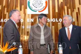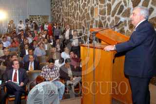 Texcoco, Edo. Mex, 09 JUNIO 2004.- El diputado Emilio Chuayffett (der) inauguró el Ciclo de Mesas Redondas "El México Agrario del Siglo XXI", organizado por la Comision de la Reforma Agraria de la la Cámara de Diputados, en la Universidad Chapingo. En la imagen Florencio Salazar Adame, secretario de la Reforma Agraria (izq). FOTO: Pedro Argumedo/CUARTOSCURO.COM
