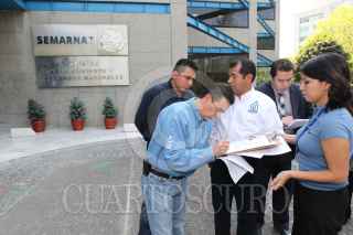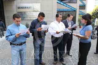 MÉXICO, D.F., 26ENERO2011.- Los panistas Agustin Castilla, diputado federal, Felipe Anaya, Obdulio Ávila, dirigente regional y Federico Manzo, diputado local, entregaron una carta en las oficinas de la SEMARNAT entorno a la Super Vía. FOTO: IVÁN MENDEZ/CUARTOSCURO.COM