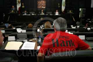 México, D.F. 09 JUNIO 2004.- El senador Raúl Pompa, de Baja California, promovió la candidatura presidencial de Jorge Hank durante la sesión de la comisión permanente en el senado. FOTO: Sandra Perdomo/CUARTOSCURO.COM