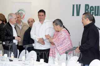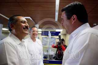 LA PAZ, BAJA CALIFORNIA SUR, 26ENERO2011.- Manlio Fabio Beltrones, coordinador y presidente de la mesa directiva del Senado, Beatriz Paredes Rangel, presidenta del CEN del PRI y Ricardo Barroso Agramont, candidato del PRI a la gubernatura del estado durante el inicio de la reunión plenaria del PRI en el estado. FOTO: CUARTOSCURO.COM