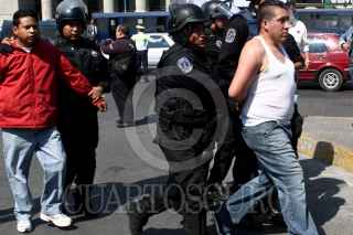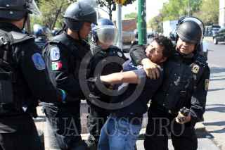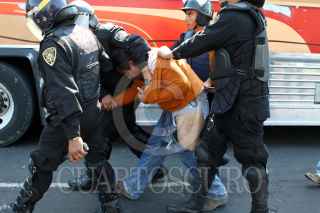 MÉXICO, D.F., 27ENERO2010.- Una fuerte movilizacion del agrupamiento de granaderos y de elementos de la policía se realizo a un costado del Palacio de Bellas Artes para detener a varios miembros de la Asamblea de Barrios los cuales golperaron a elementos de la Secretaria de Seguridad Pública y policías en una protesta afuera de la Conagua. FOTO: RODOLFO ANGULO/CUARTOSCURO.COM