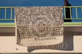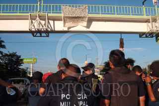 ACAPULCO, GUERRERO, 27ENERO2010.- Una narcomanta fue colgada en un puente sobre el Boulevard Vicente Guerrero a las 05:30 de la tardem a la altura de la Comisión Federal de Electricidad. FOTO: URIEL SANCHEZ/CUARTOSCURO.COM