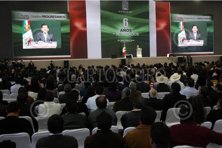 PUEBLA, PUEBLA 27ENERO2011.- El gobernador de Puebla, Mario Marín Torres, rindió su sexto y último informe de labores ante cientos de invitados de la clase política, empresarial y social en el recien inaugurado Centro Expositor de Puebla. FOTO: FRANCISCO GUASCO/CUARTOSCURO.COM