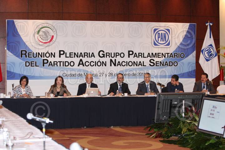 MÉXICO, D.F., 28ENERO2011.- Gustavo Madero, dirigente nacional del PAN y José González Morfín, coordinador de los senadores panistas, ofrecieron una conferencia de prensa tras concluir su reunión plenaria. FOTO: CUARTOSCURO.COM